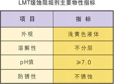 LMT緩蝕阻垢劑由防銹劑、緩蝕劑、阻垢劑、殺菌滅藻劑等有機(jī)酸鹽和無(wú)機(jī)酸鹽組成。外觀為淺色液體,有效成分約為30%,PH值≥7。