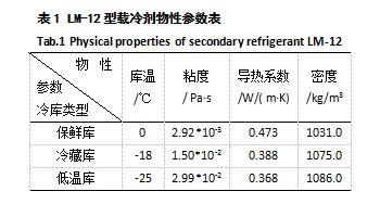 此優(yōu)化方案中所用載冷劑為冰河冷媒科技(朝陽)有限公司有限專利產(chǎn)品冰河冷媒,其特點是用量省、載冷能力強、防銹性能突出、無毒、無閃點解決了傳統(tǒng)載冷劑存在的問題,使設(shè)備使用壽命至15年以上。相關(guān)物性參數(shù)對比見表1。