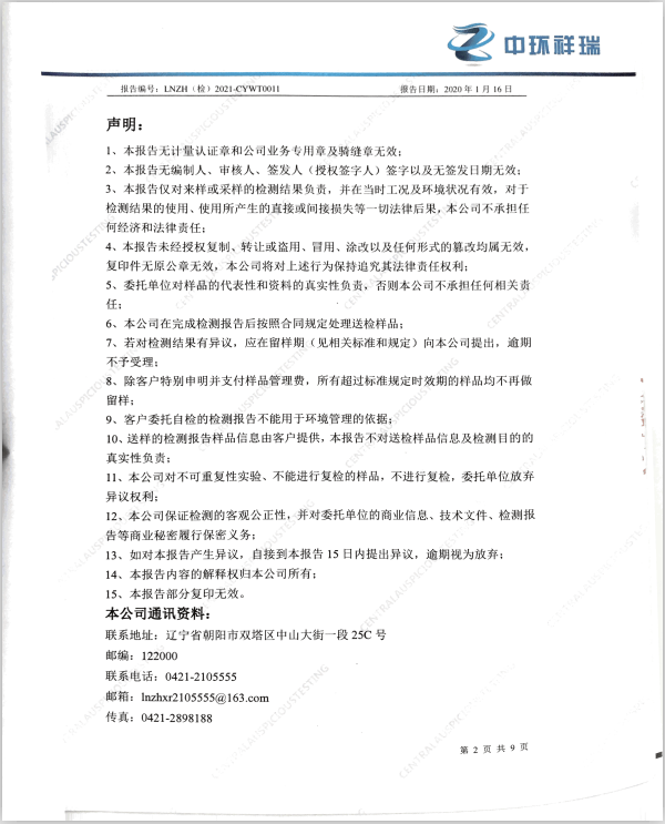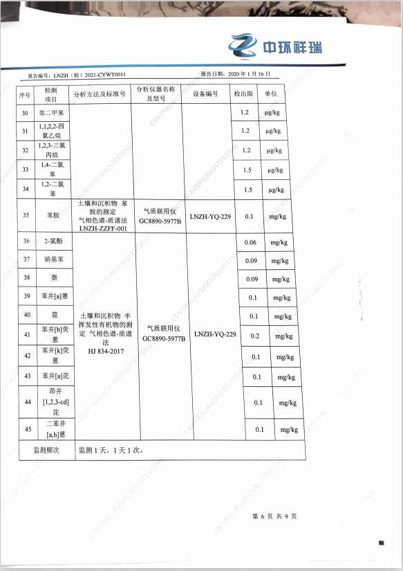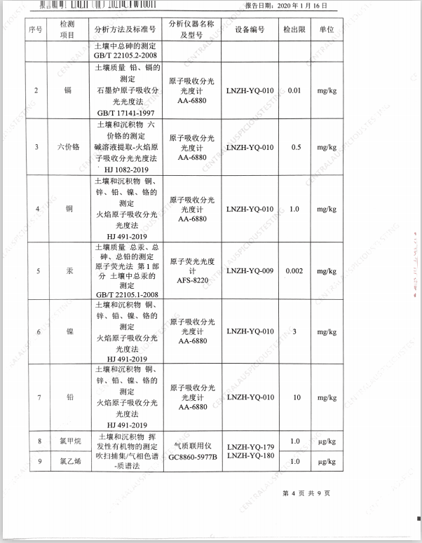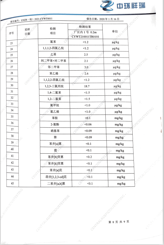 朝陽光達(dá)化工有限公司西廠區(qū)土壤檢測報(bào)告公示