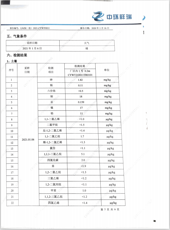朝陽光達(dá)化工有限公司老廠區(qū)土壤檢測報(bào)告公示