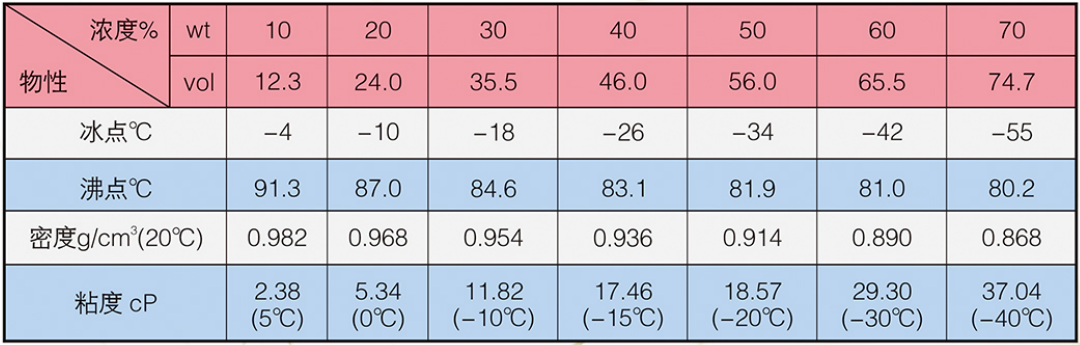 LM-3系列冰河冷媒由一元醇改性構(gòu)成,主要添加劑包括防腐蝕劑,防霉劑,增溶劑等。外觀為淺色液體,實(shí)際無毒。20℃時(shí),原液密度為0.820~0.830g/cm',粘度為1.68mPa·s(cP),比熱為0.612cal/g·℃,熱導(dǎo)率為0.20W/m·K。沸點(diǎn)高于70℃,冰點(diǎn)低于-100℃,閃點(diǎn)為17℃。