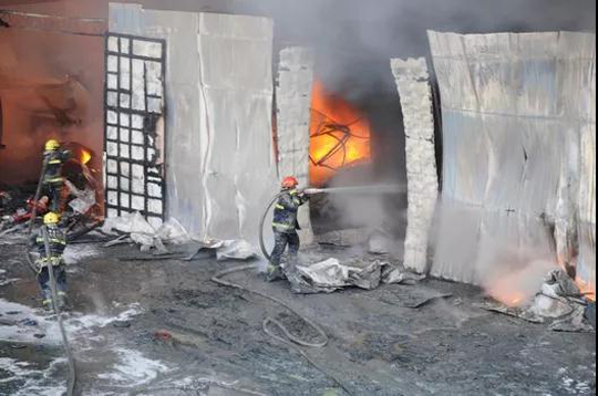 消防員全力控制冷庫火災(zāi)
