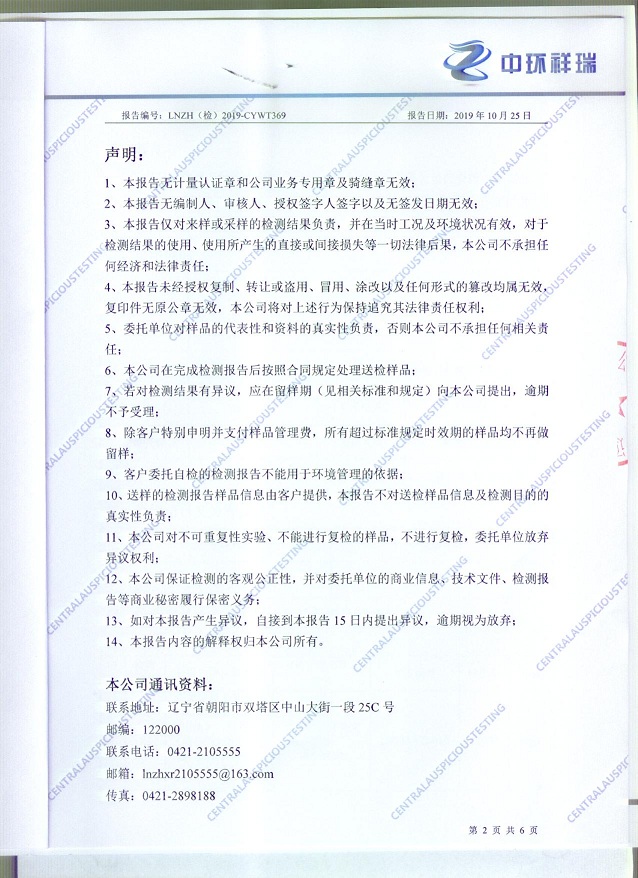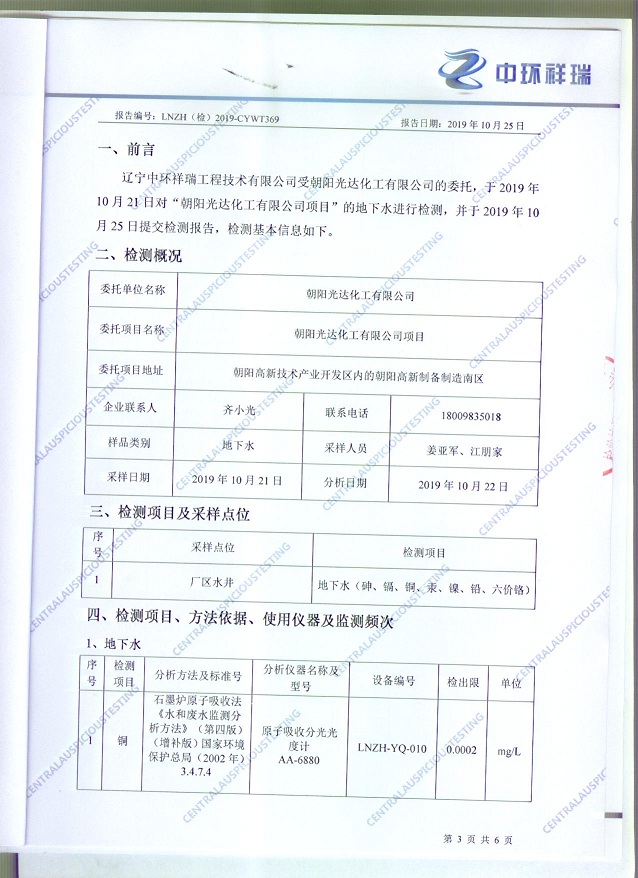 朝陽光達化工有限公司土壤檢測報告公示