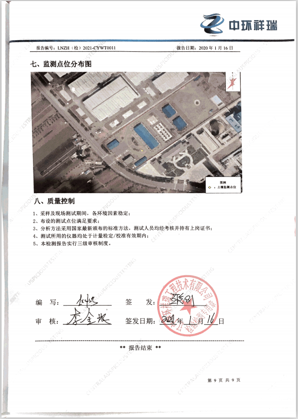 朝陽光達(dá)化工有限公司西廠區(qū)土壤檢測報(bào)告公示