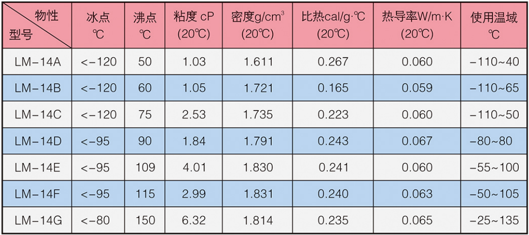 LM-14系列產(chǎn)品由全氟化合物改性而成,無(wú)閃點(diǎn)、不可燃,使用安全性好;臭氧消耗潛值為零,全球變暖潛能值極低,環(huán)境友好。本品具有優(yōu)異的電絕緣性能和理想的化學(xué)惰性;同時(shí)還具有優(yōu)良的導(dǎo)熱性能,良好的流動(dòng)性,對(duì)碳鋼、不銹鋼、紫銅等金屬防銹性能優(yōu)良,具有廣泛的適用性。