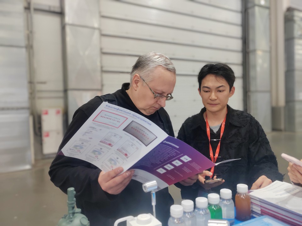 展會期間,冰河冷媒憑借低冰點、高導(dǎo)熱性、化學(xué)穩(wěn)定性強的產(chǎn)品優(yōu)勢,以及無腐蝕、寬溫域、環(huán)保安全的核心特性,成功吸引眾多俄羅斯及東歐制藥企業(yè)駐足咨詢,團隊人員針對合成控溫、低溫保存、精準溫控等應(yīng)用場景,提供定制化技術(shù)解答,充分展現(xiàn)產(chǎn)品在解決傳統(tǒng)載冷劑腐蝕設(shè)備、效能低下等痛點上的顯著成效,助力制藥企業(yè)實現(xiàn)降本增效與合規(guī)生產(chǎn)的雙重目標。
