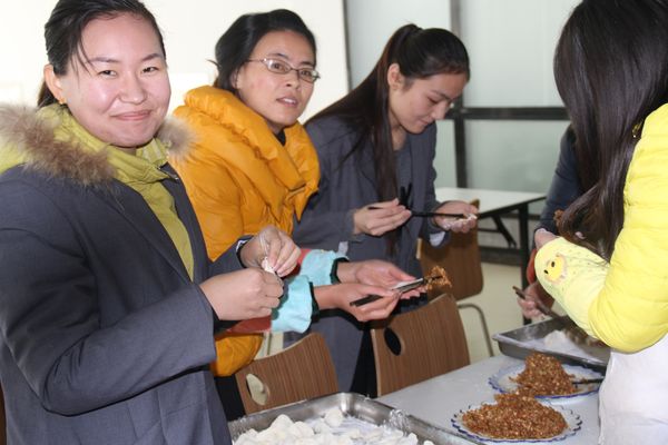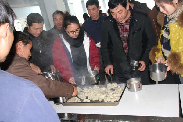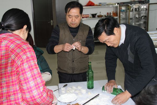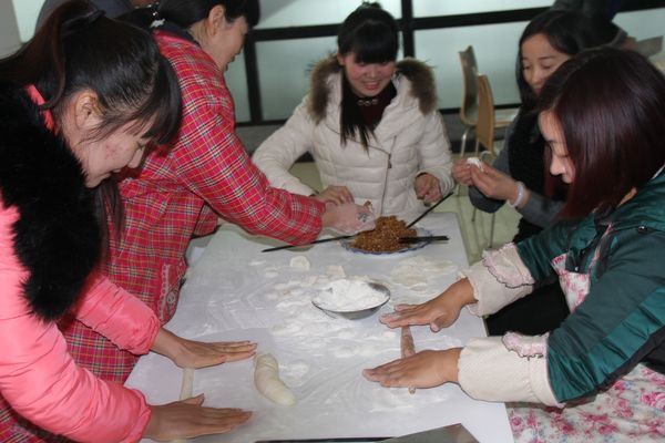 我公司領(lǐng)導(dǎo)組織各部門(mén)人員以及一線工人,弘揚(yáng)毛主席“自己動(dòng)手,豐衣足食”的作風(fēng),東起全體員工自己動(dòng)手包餃子。在公司領(lǐng)導(dǎo)的組織下,大家開(kāi)始有秩序的進(jìn)行準(zhǔn)備工作,系上圍裙,有的和面、有的搟皮、有的做餃子餡。大家分開(kāi)兩撥,這邊和面,那邊飽餃子,氣氛很活躍。同事們以迅雷不及掩耳之勢(shì)完成了準(zhǔn)備工作,準(zhǔn)備工作完成后,進(jìn)入包餃子階段,雖然很多同事不怎么會(huì)包餃子,但是在別人的幫助下很快進(jìn)入狀態(tài)。看著一個(gè)個(gè)新鮮出爐的餃子,同事們的表情非常精彩,相互調(diào)侃的的話也漸漸多起來(lái),包餃子工程進(jìn)入***階段,氣氛一時(shí)異?;馃?,看著同事們一個(gè)個(gè)熱情洋溢的表情,一盤(pán)盤(pán)“奇形怪狀”的餃子真是羨煞旁人!